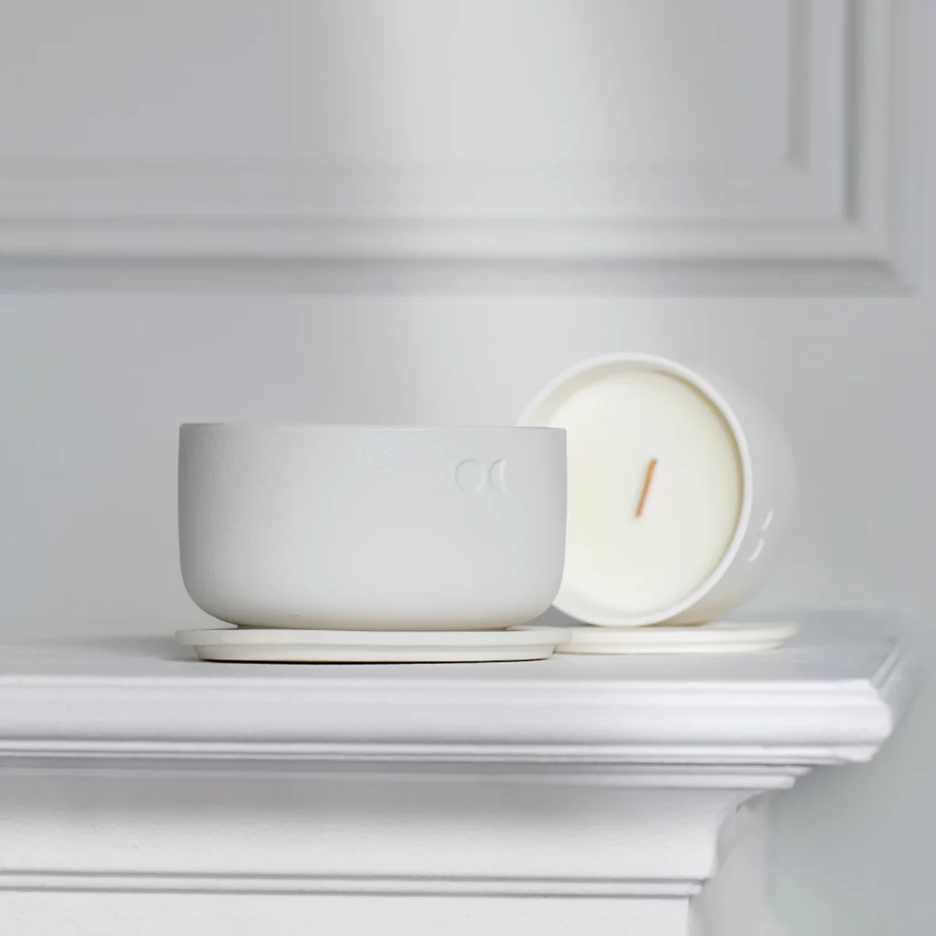 BLOMSTRENDE KERAMISK LYS – SANDELTRÆ & JASMIN – 220G€ 39,99 -