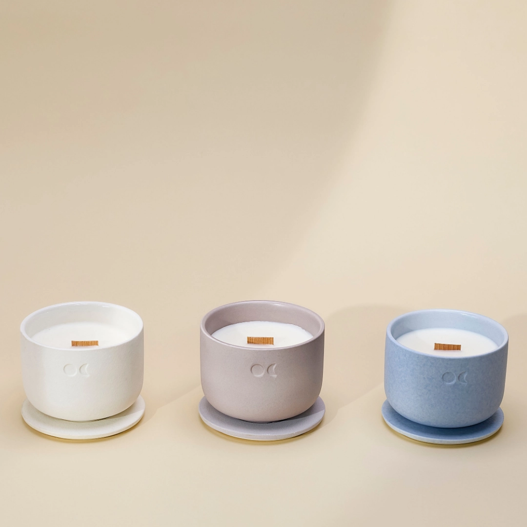 Indulge in our Blooming Triad set featuring Sea Salt Sage, English Pear Freesia, and Lemongrass Bergamot. Each candle, in a handcrafted ceramic holder, offers a unique scent experience. After use, plant the included seeds in the pots for a touch of natural elegance in your home.