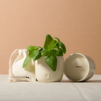 Unsere Limetten-Basilikum-Kerze duftet nicht nur fantastisch, sondern werden auch in einem schönen weißen Keramikgefäß geliefert, das nach dem Abbrennen der Kerze als Blumentopf wiederverwendet werden kann. Außerdem legen wir jedem Kauf wachsendes Saatpapier bei, damit Sie schon vor dem Erlöschen der Kerze deinen grünen Daumen einsetzen können.